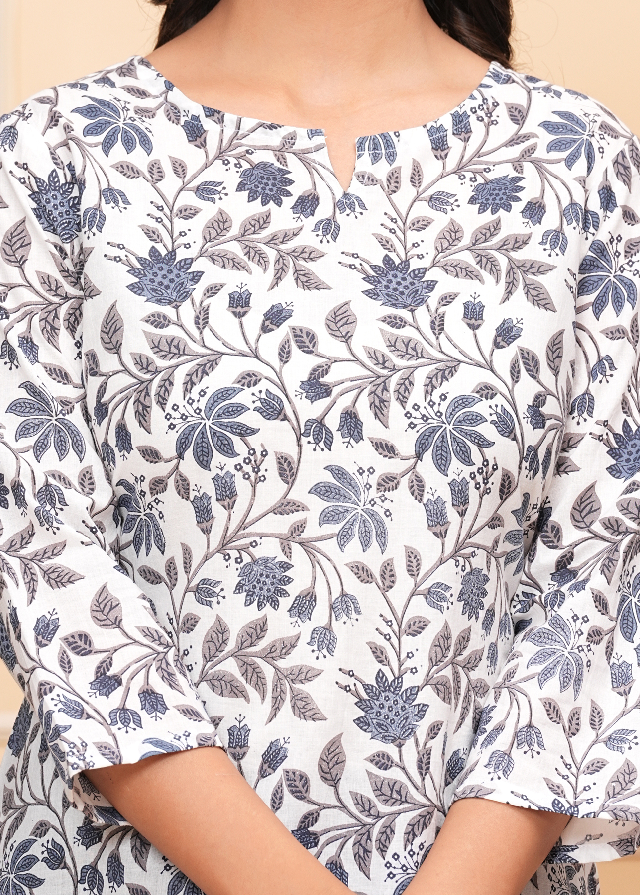 Rexxica Women Cotton White Ethnic Cherokee Printed Short Kurti