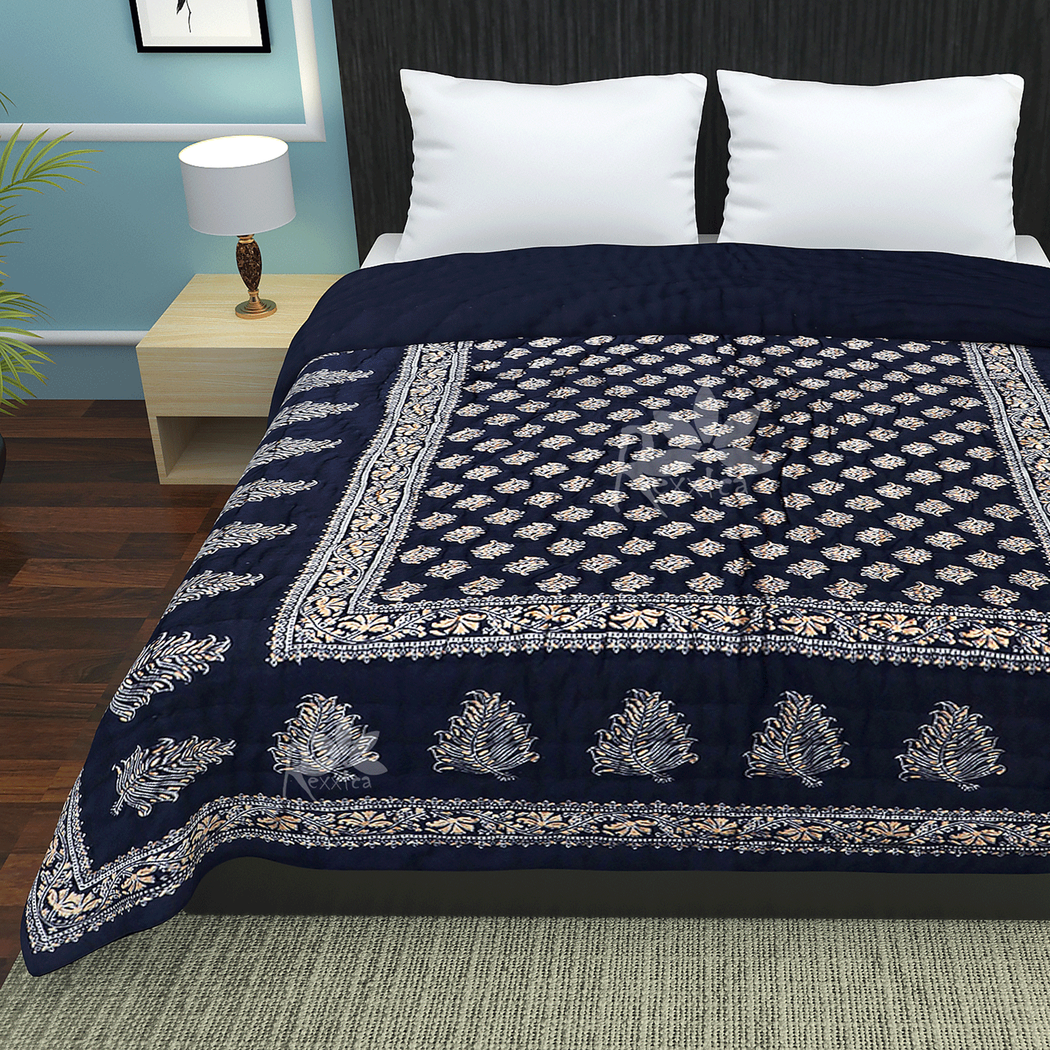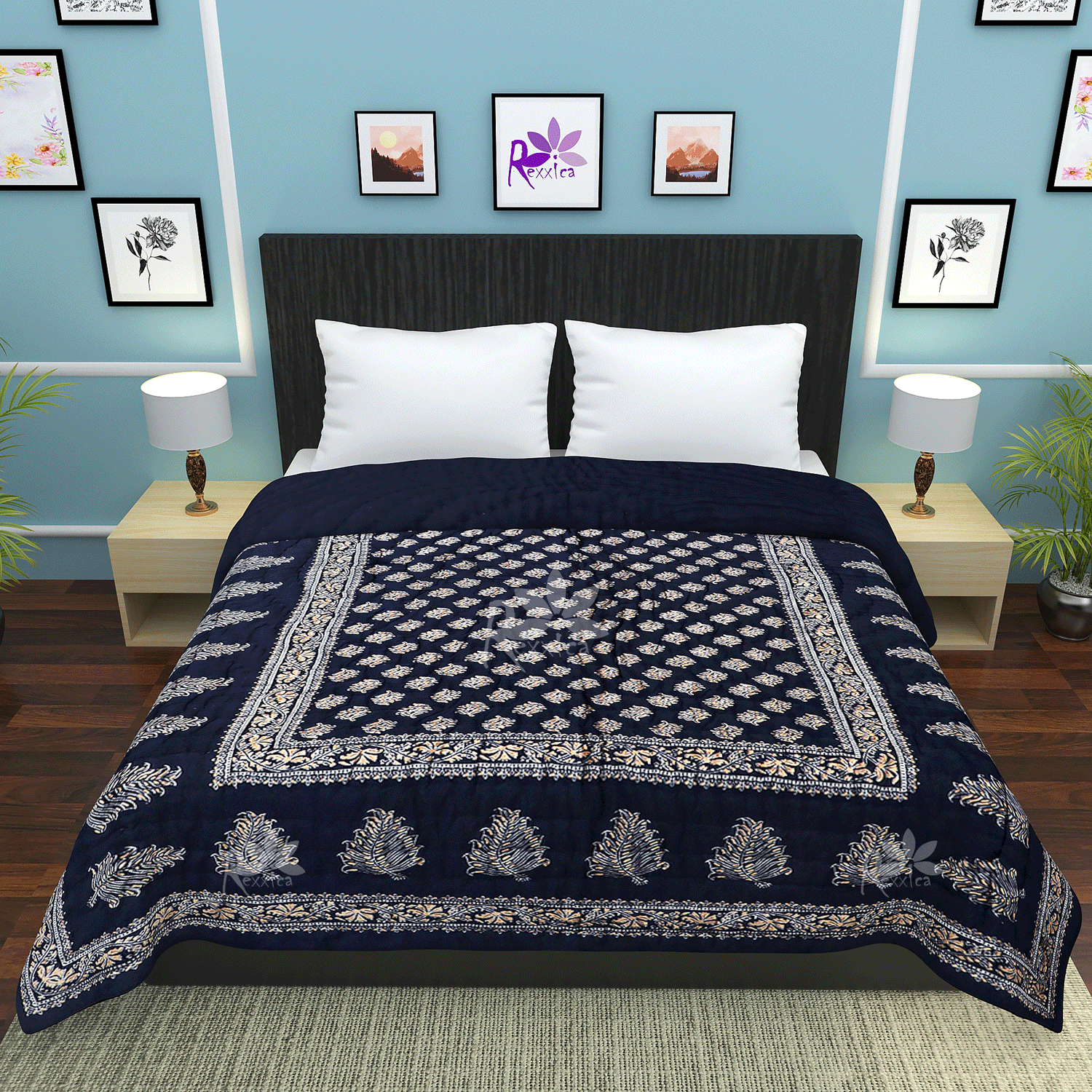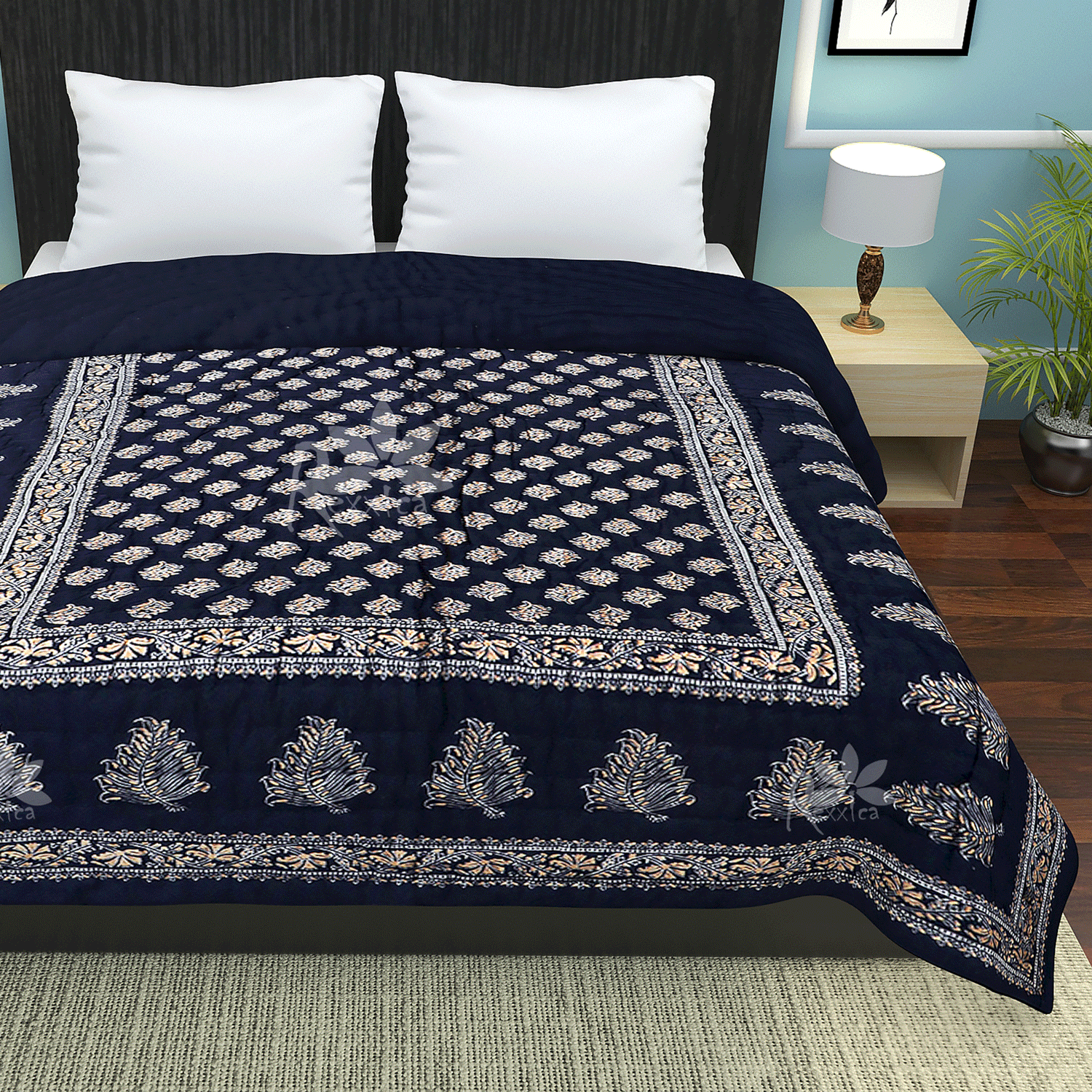 - Brand : Rexxica | Material – Cotton | Color – Blue| Package Contents: 1 Pic Double Jaipuri Rajai | Product Dimensions: Single Bed:-LxB: 84×57 inches. Double Bed:-LxB: 96×73 inches.