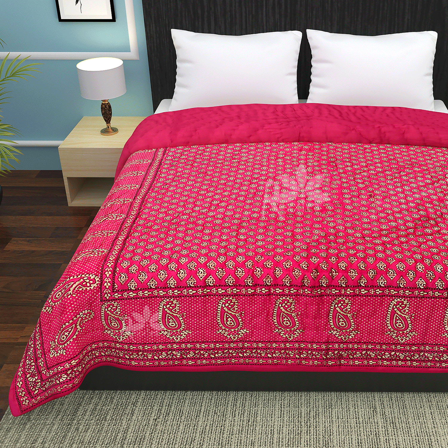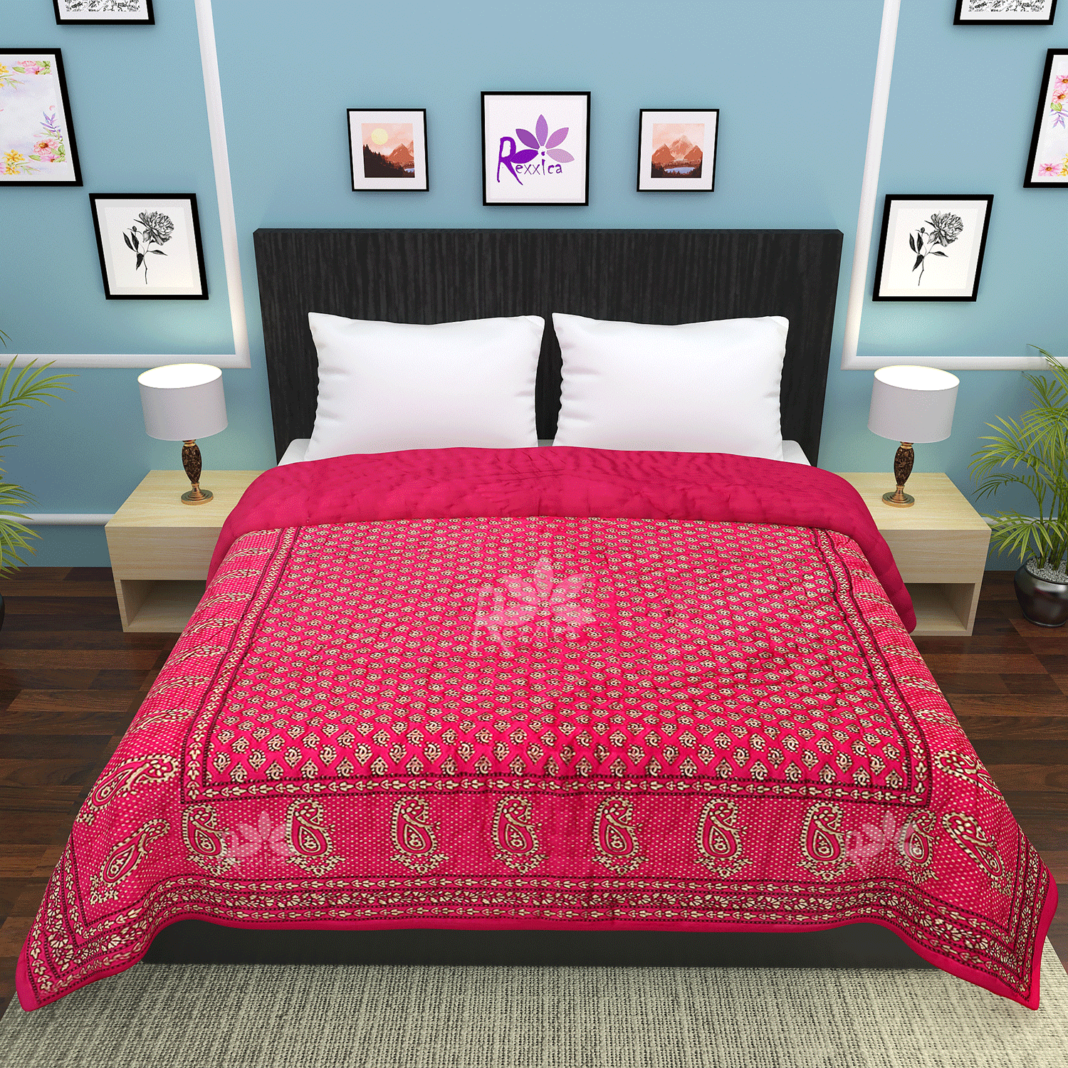Rexxica 240 TC Double Bed Organic Cotton Jaipuri Razai Bed Blanket Ac Quilt for Winter Soft Light Weight Rajasthani Traditional Rajai (Rani, Double)