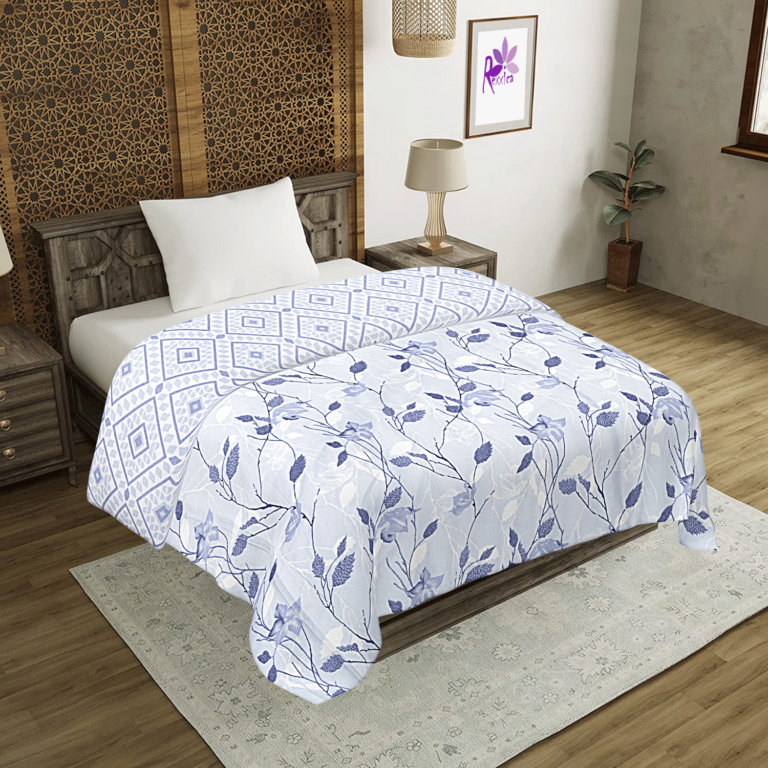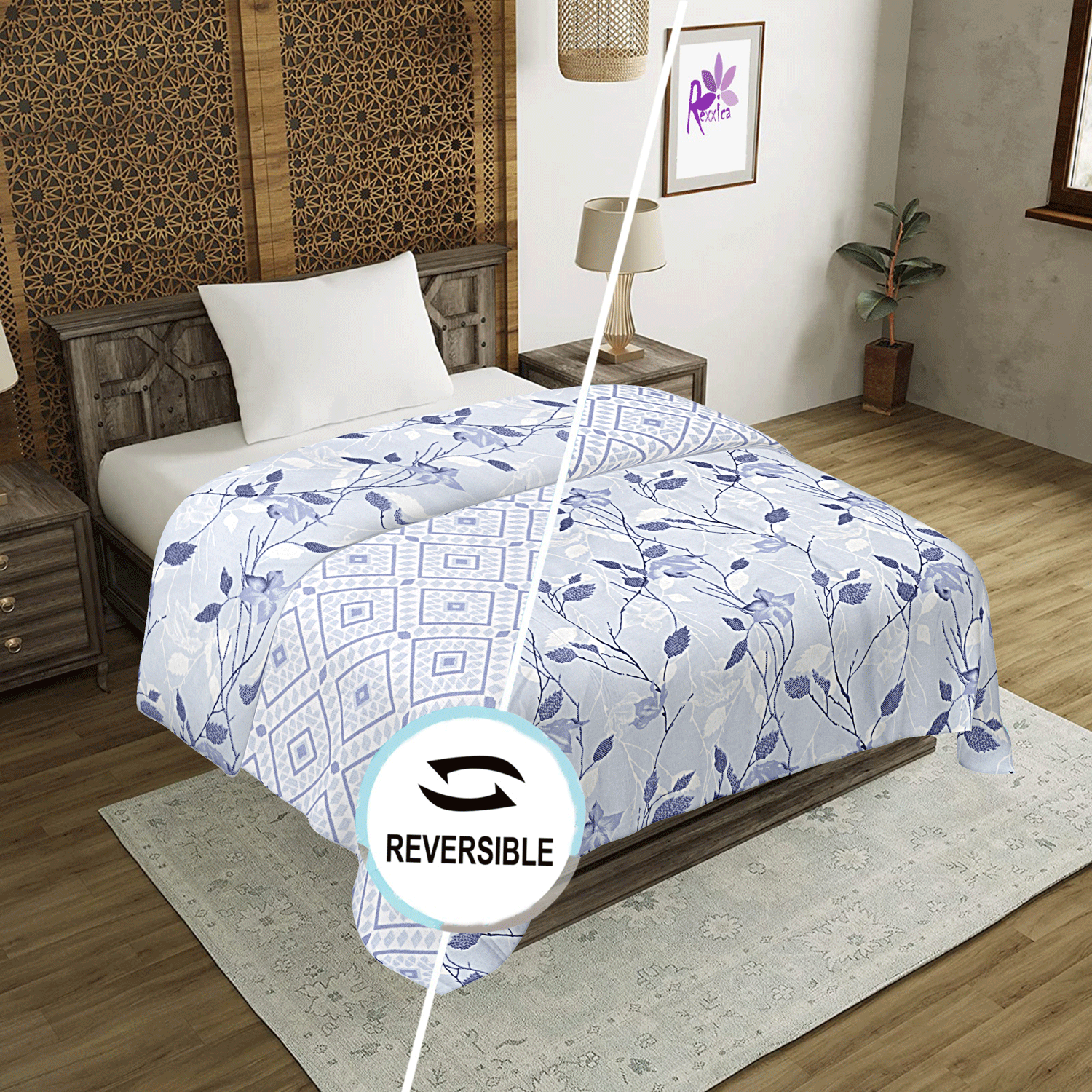 Rexxica Pure Cotton Reversible Dohar Single Bed Size | AC Blanket Comforter | Soft Light-Weight Bed Blanket (85 x 55 inch, Small Blue, Pack of 1)