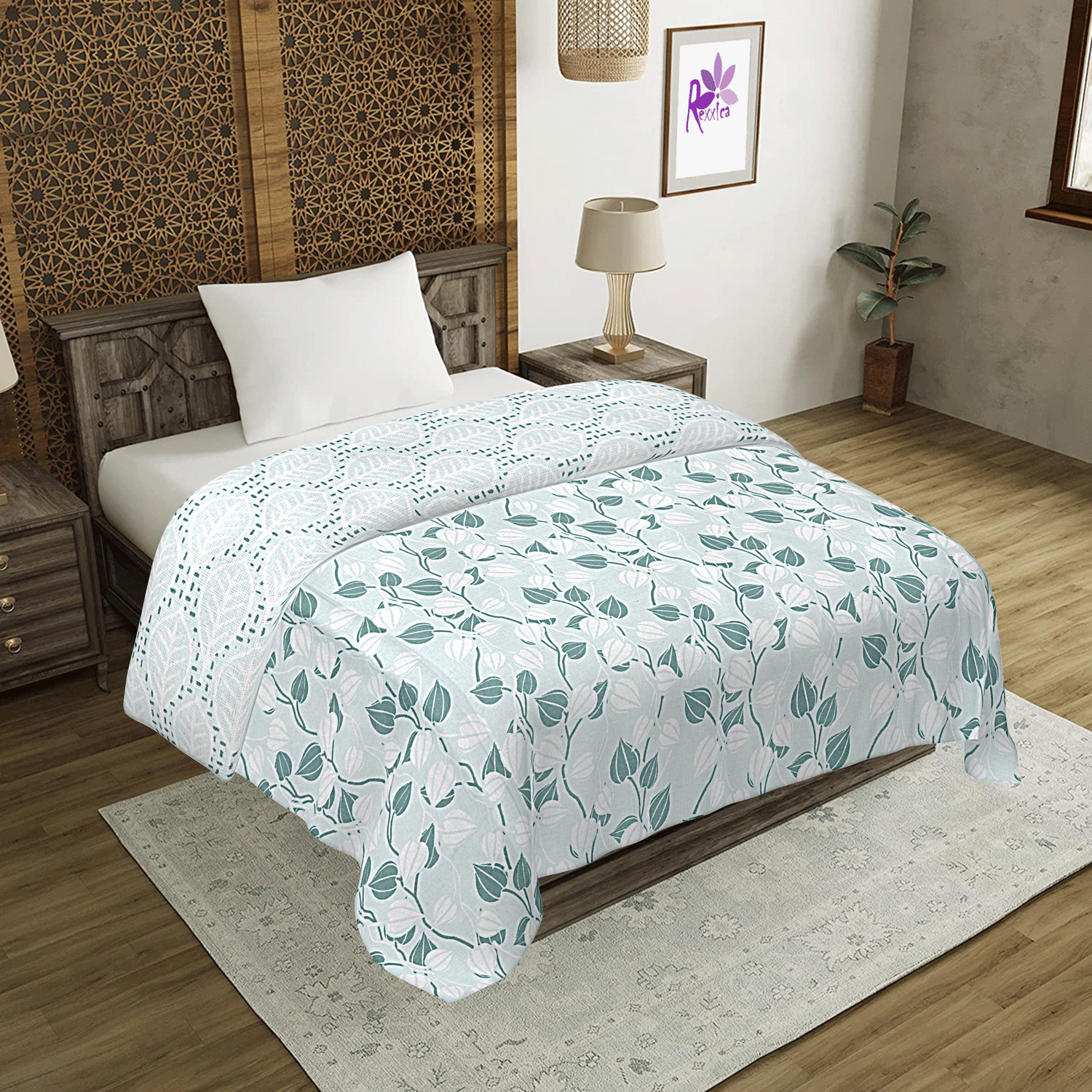 Rexxica Pure Cotton Reversible Dohar Single Bed Size | AC Blanket Comforter | Soft Light-Weight Bed Blanket (85 x 55 inch, Small Blue, Pack of 1)
