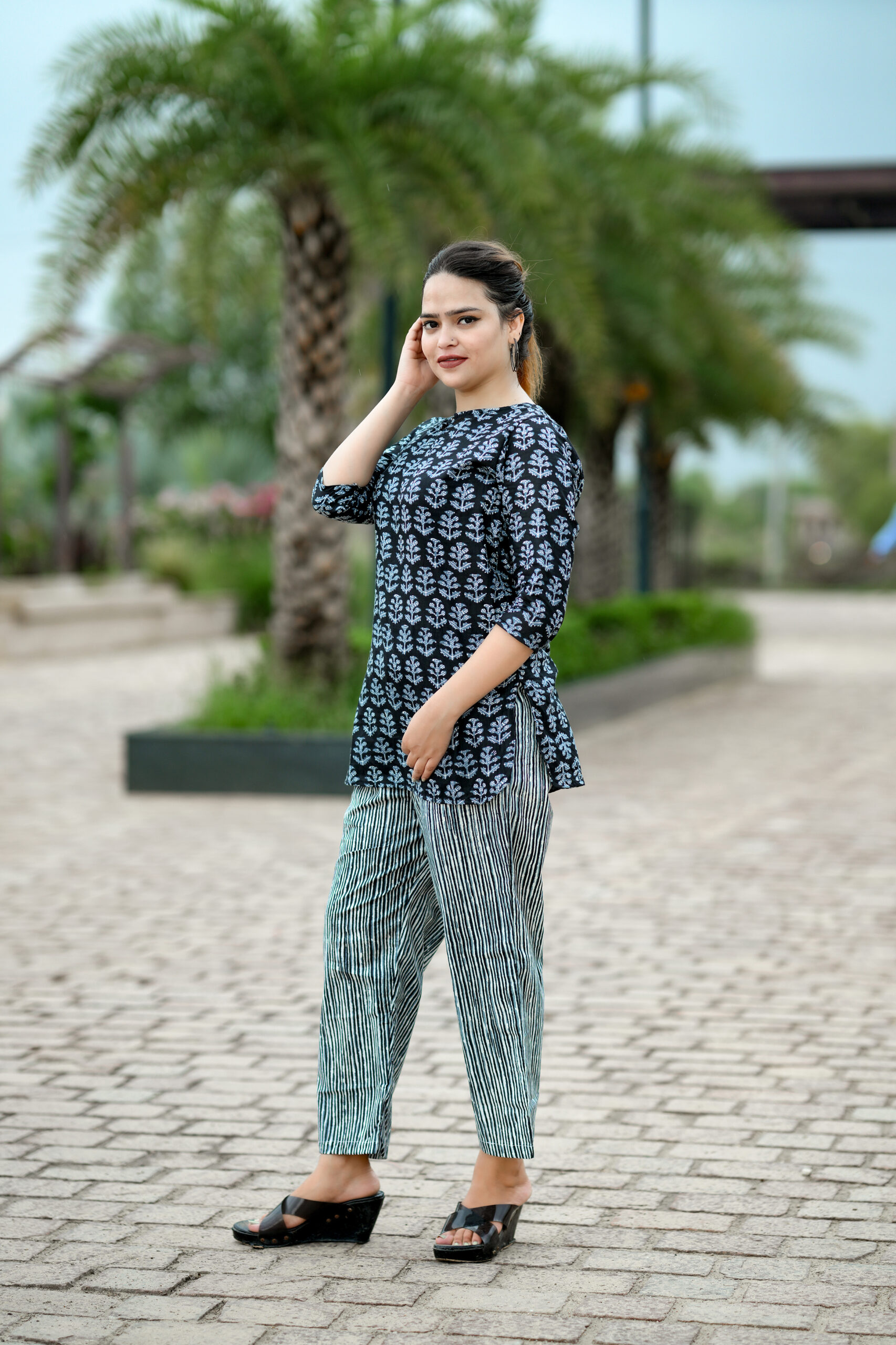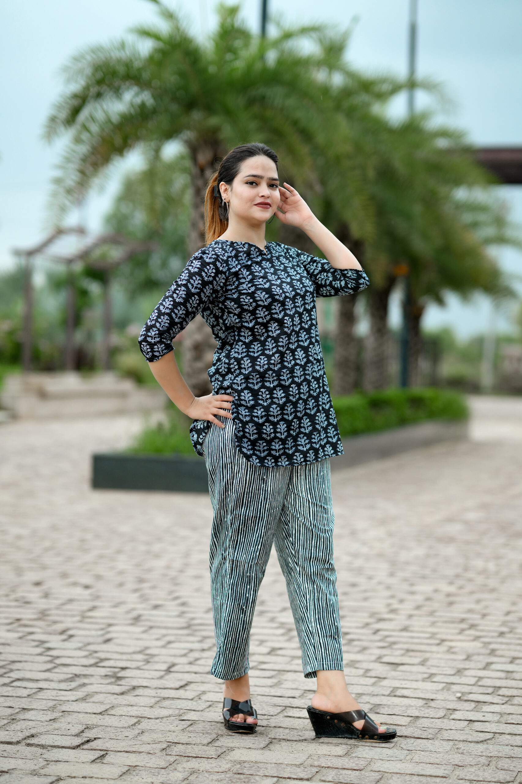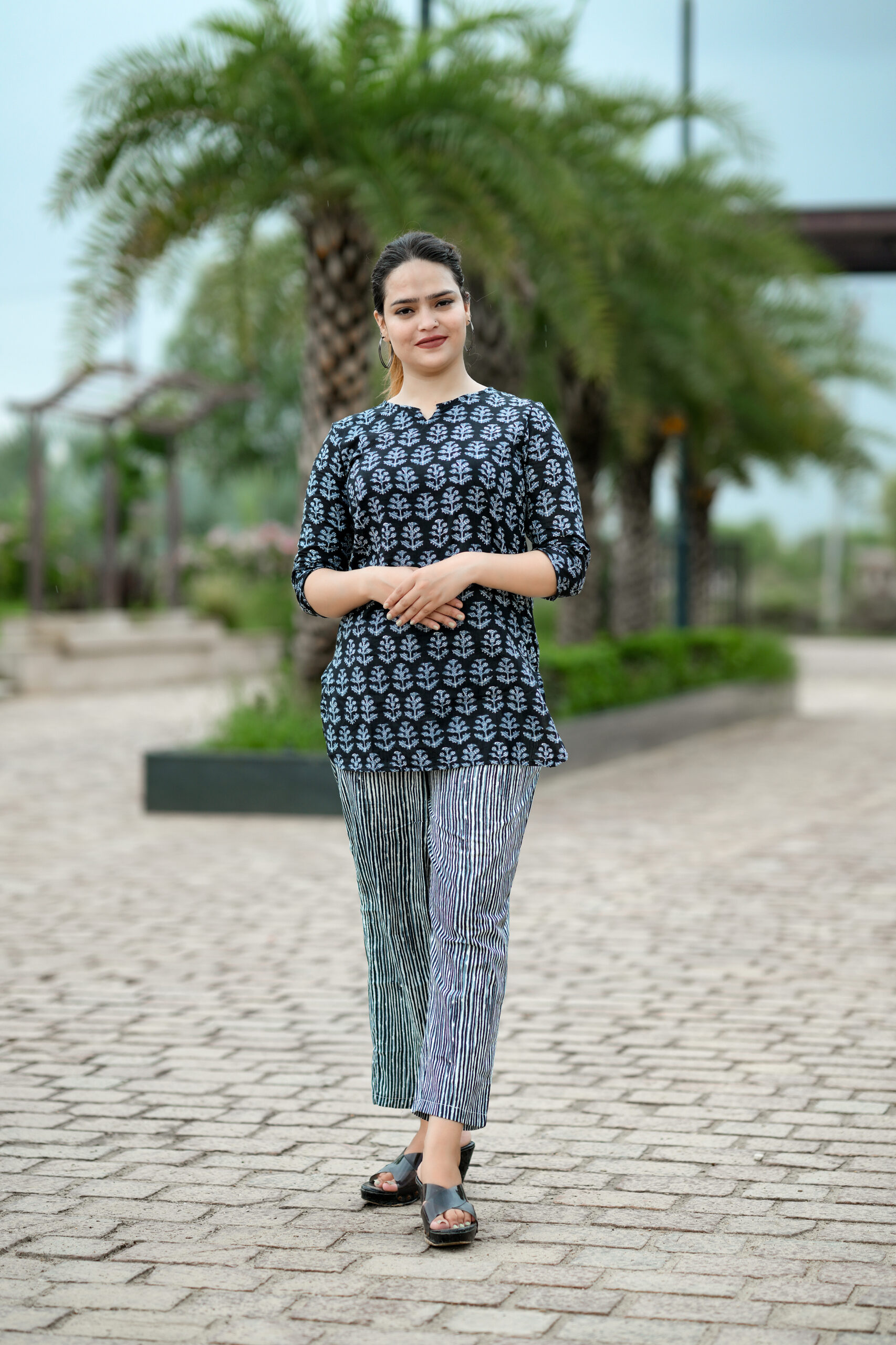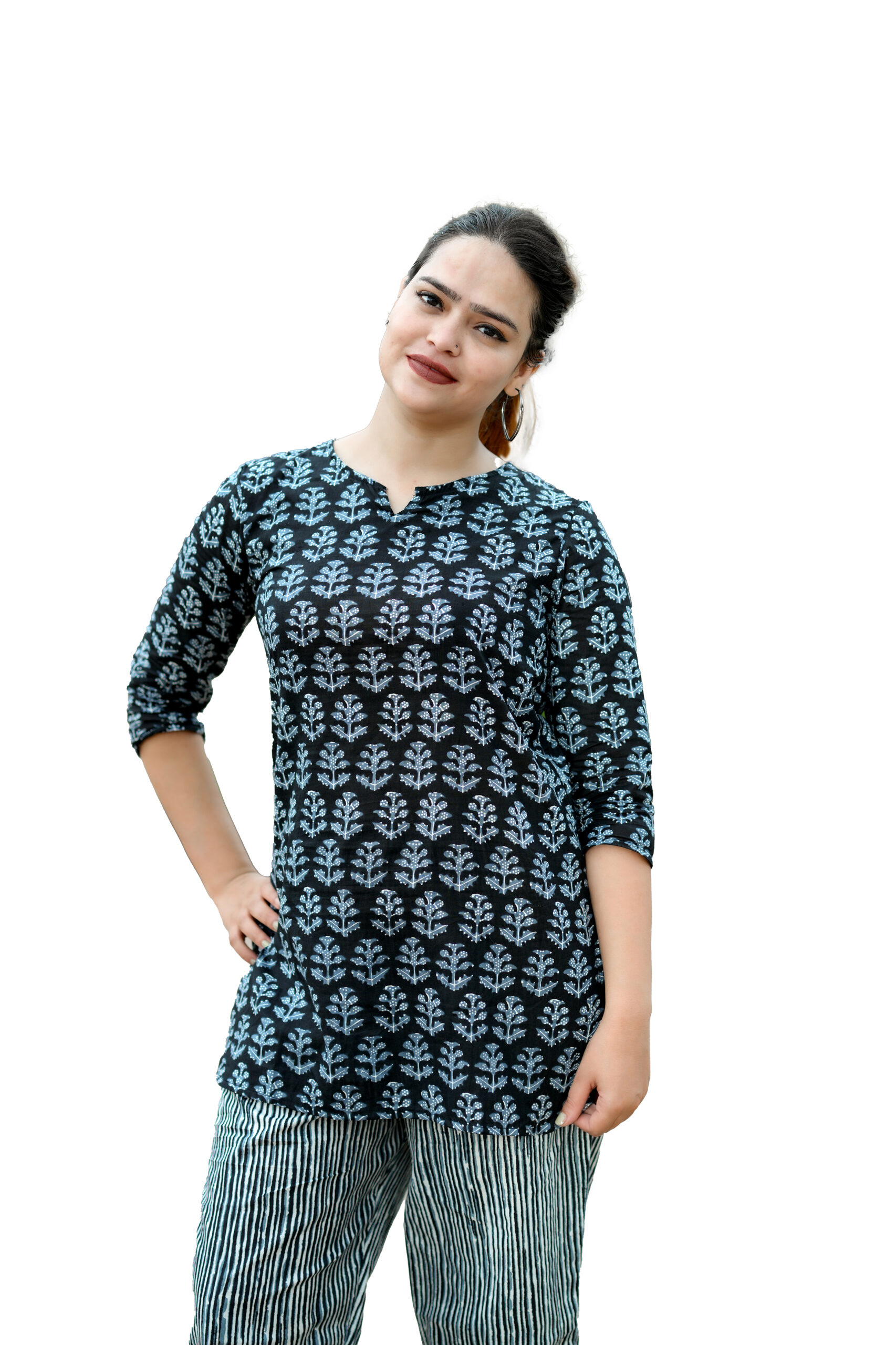 This night suit and top combo is designed to keep you up to date with work, casual, and high fashion. It is based on the most recent trends. It will provide you with comfort throughout the day. One of the wear’s main features is its exquisite design. It always looks amazing when paired with matching accessories. This multicolored, straight cotton nightgown and top set with flower design work are ideal for casual use every day. The product features 3/4-length sleeves and a banded Notch collar neck. Because it is made of cotton, this set is cozy to wear.